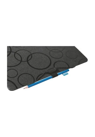 Beschriftungsetikett, Stiftschlaufe und Einstecktasche im Vorderdeckel