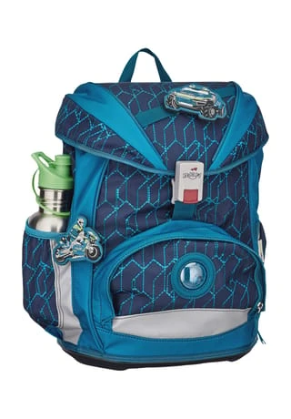 Jeder Schulranzen von DerDieDas Ergoflex ist bereits mit einem höhenverstellbaren Brustgurt und einem abnehmbaren Beckengurt (inkl weichen Beckenflossen) ausgestattet. Das sorgt für einen festen sitz auf dem Rücken und verlagert den Schwerpunkt zudem auf die Hüfte, was spürbar Schultern und Rücken entlastet. Der Schulranzen besitzt eine angenehm, weiche Rückenpolsterung und ist atmungsaktiv und körpergerecht geformt, um auch ein längeres Tragen zu ermöglichen. Das größte Highlight des Ergoflex, ist das komplett auf die Rückenlänge einstellbare Schultergurtsystem. Die Schultergurthöhe kann so per Klettverschluss mehrstufig, von XS bis XL, auf die Rückenlänge des Trägers eingestellt werden. So ist auch ein Wachstumsschub kein Problem mehr, der Rucksack passt sich einfach seinem Träger an – nicht umgekehrt! Insgesamt bietet der DerDieDas Ergoflex Platz für bis zu 22 Liter Füllvolumen. Diese sind aufgeteilt in einem großen Hauptfach (in Unterteilung in zwei Fächer), ein geräumiges Frontfach und zwei flexiblen Seitentaschen. Verschlossen und geöffnet wird der Schulrucksack per kinderleichtem Plastikverschluss, welcher Zusätzlich mit einem Magneten ausgestattet ist. – Lagekontrollriemen zur optimalen Anpassung imSchulterbereich. – Höhenverstellbares Tragegurtsystem: ergonomischgeformte, gepolsterte Tragegurte, einfach mit Klettbandzu fixieren und stufenweise von XS bis XL an dieRückenlänge des Kindes anpassbar. – Höhenverstellbarer Brustgurt, optimiert den Sitz. – Glasfaserverstärkter Rücken für zusätzliche Stabilitätund optimale Lastverteilung auf den Beckenbereich. – Ergonomisch geformtes, atmungsaktives Rückenpolsterpasst sich optimal an den Kinderrücken an. – Beckengurt mit gepolsterten Seitenflügeln: verlagertdas Gewicht auf die Hüfte und entlastet so Schulternund Rücken. Bei Bedarf abnehmbar. – Fidlock Magnetschloss: höhenverstellbar und kindgerechtzu öffnen und zu schließen ? mit einer Hand. – Geräumige Vortasche mit Reißverschluss ? idealfür Essbox oder Schüleretui. – Flexible Seitentaschen für Trinkflasche und Regenschirm.Bleiben leer schön flach. – Zwei große Hauptfächer ? ideal für rückenschonendesPacken (schwere Bücher ins hintere Fach). – Thermogeformter Boden: robust, leicht und formstabil fürStandfestigkeit und zum Schutz vor Nässe von unten.