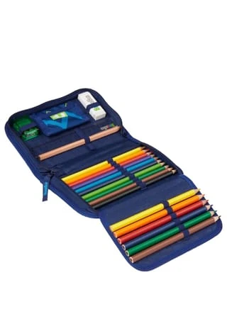 Stiftechaos adé! Mit dem bestens ausgestatteten ergobag-Mäppchen (22-tlg.) finden neben 17 Stiften in Reih und Glied auch Radiergummi, Lineal, Spitzer und Stundenplan ihren Platz. Das Federmäppchen besteht aus Textilien, die zu 100% aus recycelten PET-Flaschen hergestellt werden, und ist passend zu allen ergobag-Designs erhältlich. Abwischbares Material. Für unsere Produkte verwenden wir Textilien, die zu 100% aus recycelten PET-Flaschen gefertigt werden. Für diesen Artikel wurden 3,3 Flaschen (0,5 l) verarbeitet.