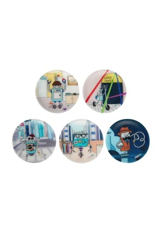 Fünf Superhelden für deine Schultasche zum Sammeln und Tauschen. Gestalte immer wieder neu.