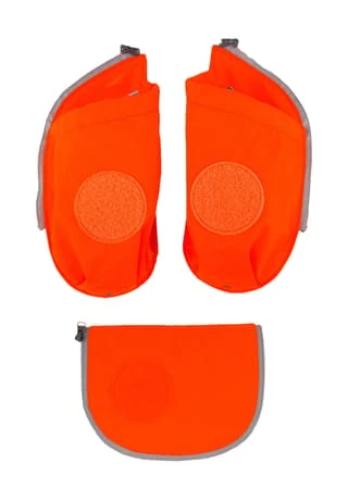 Fluoreszierendes Seitentaschen-Zip-Set aus drei Teilen in coolen Neonfarben. Damit wird der Ergobag-Schulranzen zum echten Hingucker und bietet mehr Sicherheit im Straßenverkehr. Das Set verfügt über drei Klettflächen für Ergobag-Kletties. Hergestellt aus recycelten PET-Flaschen. Passend für Ergobag Cubo/Cubo Light-Modelle vor November 2019.