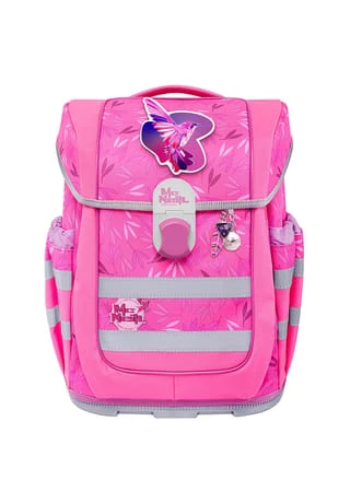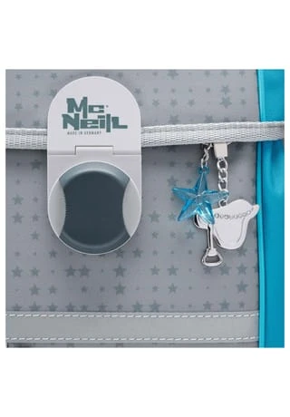 5-teiliges Schulranzen-Set der brandneuen Ergo Complete Serie von McNeill bestehend aus Schulranzen, Sportschuhbeutel, Federmäppchen gefüllt, Schlamperrolle und Motivmagnet. Der Schulranzen überzeugt durch hohe Verarbeitung und Funktionalität und verfügt über Motivmagneten, die an der Deckelkappe angebracht werden können und einen Grundmotiv komplettieren. Dadurch wird der Schulranzen ganz individuell gestaltet. Mit ergonomischem, höhenverstellbarem Tragesystem, vielzähligen Fächern und Taschen und viel Platz für Bücher, Hefte, Trinkflasche, Federmäppchen oder sonstige Mitbringsel für die Schule lässt der Schulranzen keine Wünsche offen. Die Reflektoren sorgen für Sichtbarkeit und Sicherheit auf dem Schulweg. Schulranzen Außenmaß: 29 cm x 22 cm x 38,5 cm / Gewicht: ca. 1150 g / Volumen: ca. 20 l