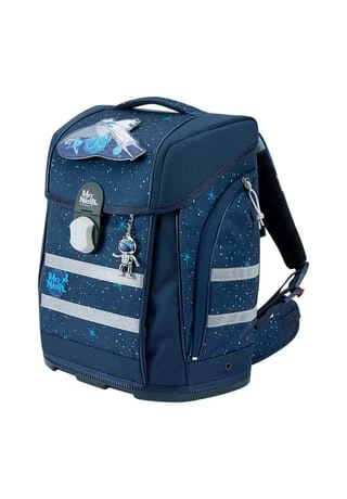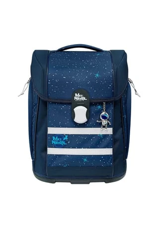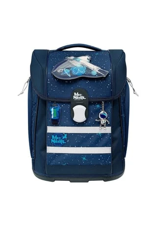 6-teiliges Schulranzen-Set von McNeill, bestehend aus Schulranzen, Sportschuhbeutel, Federmäppchen gefüllt, Schlamperrolle, Motivmagnet und an- und ausschaltbarem Leuchtanhänger. Top-Tragekomfort durch die atmungsaktive Rückenpolsterung, höhenverstellbare Gurte sowie Becken- und Brustgurt. Der Ranzen hat einen Schnappverschluss, der magnetisch angezogen wird und sehr leichtgängig wie von selbst schließt. Die Bodenplatte ist aus Plastik und bietet dadurch einen wasserfesten und sicheren Stand. Geräumige offene Seitentaschen können für die Trinkflasche oder sonstige Mitbringsel für die Schule verwendet werden. An- und ausschaltbarer Leuchtanhänger bietet eine sichere und optimale Lösung, wenn es um die Sichtbarkeit ihres Kindes geht. Schulranzen Außenmaß: 30 cm x 22 cm x 38 cm / Leergewicht: ca. 1.000 g / Volumen: ca. 20 l