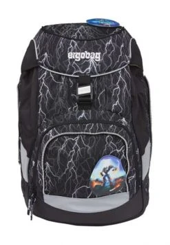 Ergobag Schulranzen-Set Pack „Super ReflektBär“, 6-teilig Schwarz/ Grau/ Weiß