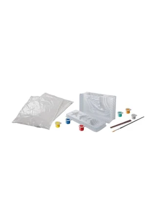 enthalten sind zwei Gießformen, zwei Gipsbeutel, Pinsel, Feile sowie eine Anleitung