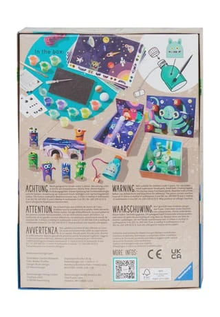 Im EcoCreate Set Monster Games“ von Ravensburger ist alles enthalten, um aus nicht mehr benötigtem Material (z.B. leere Milchtüten oder Toilettenpapierrollen) von zu Hause, tolle und einzigartige DIY Projekte zu basteln. Die gebastelten Upcycling-Objekte haben dabei einen Zweitnutzen und sind Teil eines Spiels oder Accessoires. Die einfach gehaltene Anleitung führt Schritt für Schritt durch jedes Projekt und garantiert ein schönes Endergebnis.Upcycling und basteln in einem:Mit EcoCreate können Kinder mit nicht mehr benötigten Materialien von zu Hause und den in dem Produkt enthaltenen Bastelmaterialien tolle Upcycling Projekte basteln. Im Set Monster Games“ ist alles enthalten, um verschiedenste Geschicklichkeitsspiele, wie z.B. einen Parcours in der Box, einen Flipper, unterschiedliche Fang- und Wurfspiele sowie Hindernisspiele mit lustigen Monstern zu basteln.Von zu Hause werden dafür leere Milchtüten, Toilettenpapierrollen, Korken, Kunststoffflaschen sowie Kartonreste benötigt.Im Anschluss an den Bastelspaß sorgen die gebastelten Upcycling-Objekte für tollen Spielspaß im Kinderzimmer.