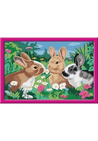 Dank der farbigen Motivlinien können die Kinder das ganze Motiv „Putzige Häschen“ und die Farben schneller erkennen. Der Pinsel hat eine gute Führung und die 15 Acrylfarben sind bereits fertig gemischt. So entsteht nach und nach ein perfektes Bild. Mit Malen nach Zahlen von Ravensburger lernen die Kinder Flächen sorgfältig auszumalen, ihr Maltalent zu verbessern sowie feinmotorische Fähigkeiten zu entwickeln. Am Ende stehen Freude, Stolz und ein Erfolgserlebnis, das die Lust am Weitermalen weckt. Das süße Motiv mit den 3 kleinen Kaninchen ist eine tolle Geschenkidee für Kinder ab 7 Jahren und eine schöne Dekoration für das Kinderzimmer. ACHTUNG: Anweisung vor Gebrauch lesen, befolgen und nachschlagebereit halten. Die Farben enthalten Reaktionsmasse aus: 5-Chlor-2-methyl-4-isothiazolin-3-on [EG-Nr. 247-500-7] und 2-Methyl-4-isothiazolin-3-on [EG-Nr. 220-239-6] (3:1). Kann allergische Reaktionen hervorrufen.