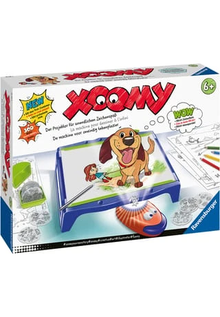 Mit dem neuen Ravensburger Xoomy® Maxi lernen Kinder ab 6 Jahren ganz einfach Zeichnen. Dank des XXL Lichttisches und der neuen LED-Zoomlampe haben Kinder schnell das gewünschte Motiv auf das Papier projiziert. Es stehen über 300 Motive zur Auswahl um eigene Geschichten zu zeichnen und fantastische Welten zu erschaffen. Das gesamte Malset mit Zeichentisch und LED-Zoomlampe enthält Folienbox, Zoom-Halterung, 72 Motivfolien, 10 Themenblätter in A4, Stift und eine Anleitung. Möchte ein Kind lernen, Gesichter und Tiere zu zeichnen? Mit dem Xoomy® Maxi von Ravensburger gelingt auch das ganz einfach.