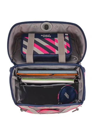 7-teiliges Schulranzen-Set von School-Mood, bestehend aus Schulranzen, Sportbeutel/Turnbeutel, Schüleretui (21-tlg.), Schlamperrolle, Brustbeutel, Brotdose und 3 Patchies. Klassischer Schulranzen der Hero Air+ Serie ist robust, wasserabwesend, leicht zu reinigen und lässt keine Wunsche offen. Selbstschließender Magnetverschluss ermöglicht ein kinderleichtes Öffnen und Schließen des Deckels. Das mitwachsende, ergonomisch geformte Tragesystem mit Brust- und Beckengurt bietet hervorragenden Tragekomfort und optimalen Sitz. Im Inneren ist der Schulranzen bestens ausgestattet und bietet Ordnung, Übersicht und viel Stauraum für Hefte, Bücher, Federmäppchen, Brotdose usw. Reflektierende Elemente sorgen für Sicherheit bei Dunkelheit. Mit wechselbaren Patchies für Motivaustausch lässt sich der Schulranzen immer neu und individuell gestalten. Dank integrierter Halterung kann der Sportbeutel am Schulranzen befestigt werden. Etui ist komplett bestückt (21tlg.) und verfügt über einen Stundenplan. Schulranzen Außenmaß: 28 cm x 22 cm x 36 cm / Gewicht: ca. 900 g / Volumen: ca. 20 l