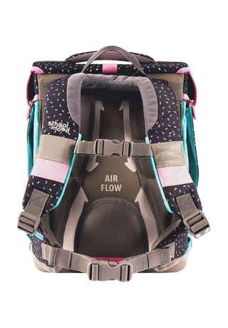 7-teiliges Schulranzen-Set von School-Mood, bestehend aus Schulranzen, Sportbeutel/Turnbeutel, Schüleretui (21-tlg.), Schlamperrolle, Brustbeutel, Brotdose und 3 Patchies. Klassischer Schulranzen der Hero Air+ Serie ist robust, wasserabwesend, leicht zu reinigen und lässt keine Wunsche offen. Selbstschließender Magnetverschluss ermöglicht ein kinderleichtes Öffnen und Schließen des Deckels. Das mitwachsende, ergonomisch geformte Tragesystem mit Brust- und Beckengurt bietet hervorragenden Tragekomfort und optimalen Sitz. Im Inneren ist der Schulranzen bestens ausgestattet und bietet Ordnung, Übersicht und viel Stauraum für Hefte, Bücher, Federmäppchen, Brotdose usw. Reflektierende Elemente sorgen für Sicherheit bei Dunkelheit. Mit wechselbaren Patchies für Motivaustausch lässt sich der Schulranzen immer neu und individuell gestalten. Dank integrierter Halterung kann der Sportbeutel am Schulranzen befestigt werden. Etui ist komplett bestückt (21tlg.) und verfügt über einen Stundenplan. Schulranzen Außenmaß: 28 cm x 22 cm x 36 cm / Gewicht: ca. 900 g / Volumen: ca. 20 l