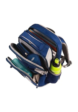 Der Ranzen im coolen Rucksacklook mit wasserundurchlässigem, standfestem Boden besitzt gleich 3 Halterungen zum Fixieren des Sportbeutels. Eine isolierte Fronttasche mit Netzfach sowie ein Reißverschluss-Steckfach vorne bieten zusätzlichen Stauraum. Retroreflektierende Flächen an allen Seiten sorgen für Sicherheit im Dämmerlicht.
