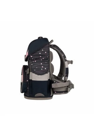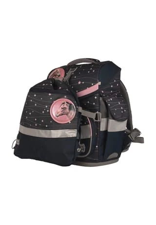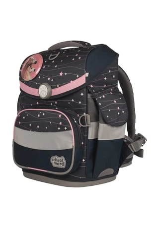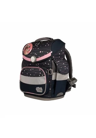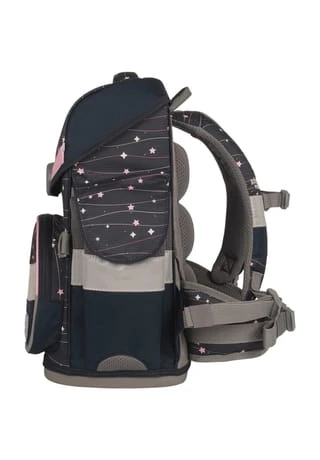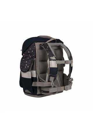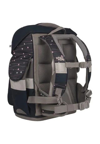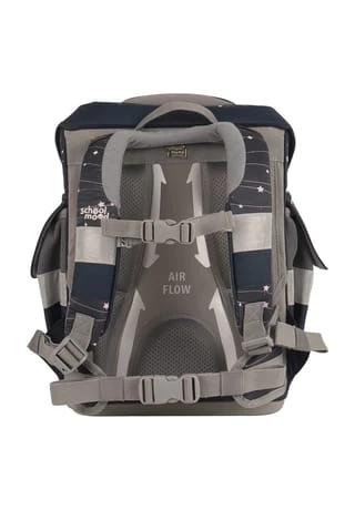 7-teiliges Schulranzen-Set von School-Mood, bestehend aus Schulranzen, Sportbeutel/Turnbeutel, Schüleretui (21-tlg.), Schlamperrolle, Brustbeutel, Brotdose und 3 Patchies. Klassischer Schulranzen der Timeless Air+ Serie ist robust, wasserabwesend, leicht zu reinigen und lässt keine Wunsche offen. Selbstschließender Magnetverschluss ermöglicht ein kinderleichtes Öffnen und Schließen des Deckels. Das mitwachsende, ergonomisch geformte Tragesystem mit Brust- und Beckengurt bietet hervorragenden Tragekomfort und optimalen Sitz. Im Inneren ist der Schulranzen bestens ausgestattet und bietet Ordnung, Übersicht und viel Stauraum für Hefte, Bücher, Federmäppchen, Brotdose usw. Reflektierende Elemente sorgen für Sicherheit bei Dunkelheit. Mit wechselbaren Patchies für Motivaustausch lässt sich der Schulranzen immer neu und individuell gestalten. Dank integrierter Halterung kann der Sportbeutel am Schulranzen befestigt werden. Etui ist komplett bestückt (21tlg.) und verfügt über einen Stundenplan. Schulranzen Außenmaß: 30 cm x 24 cm x 42 cm / Gewicht: ca. 980 g / Volumen: ca. 23 l