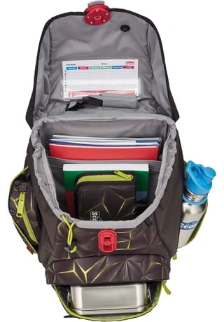 Durch den flexiblen Aufbau ist der Ranzen sehr geräumig. Rückenteil und Schulterträger sind gepolstert. Brustgurt und Hüftgurt für optimale Gewichtsverteilung. Extragroße Reflektionsflächen.