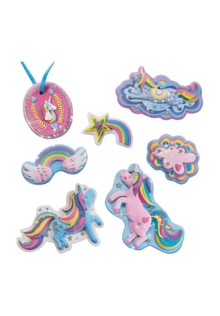 fantasievolle Gipsformen rund ums Thema Einhorn mitsamt silbernem Glitter zum Bepinseln