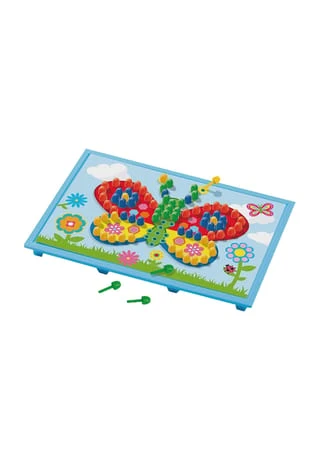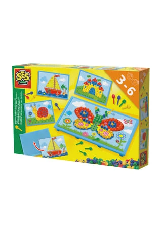 Von einer ritterlichen Burg über ein Boot auf See bis hin zu goldigen Tieren wie einer Schnecke oder einem Schmetterling – mit diesen lustigen Motiven ist Langeweile passé. Auch eigene Bilder und Ideen lassen sich ganz einfach auf das Mosaikbrett stecken. Abwechslung und kreativer Spielspaß sind vorprogrammiert! Das Set enthält 1 Steckplatte, 4 Vorlagen und Pins. Eine genaue Anleitung erklärt dir natürlich die einzelnen Schritte – so kann gar nichts mehr schiefgehen!