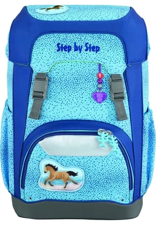 Step by Step Schulranzen – Der ultraleichte ergonomische Schulranzen hat ein schmales Design mit einer elastischen Fiberglas-Konstruktion im Rückenteil. Das ergonomische Prinzip ist gekennzeichnet durch einen abnehmbaren, höhenverstellbaren Brustgurt, ein atmungsaktives und ergonomisches Rückenpolster, ein höhenverstellbares Rückensystem und verstellbare Tragegurte. Eine ultraleichte Rückenkonstruktion und ergonomisch geschwungene Rückenpolster passen sich perfekt an die Anatomie Ihres Schulkindes an.