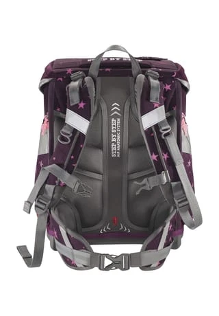 Der Space begeistert durch besonders leichtes Material, großes Fassungsvermögen und das höhenverstellbare Tragesystem, das sich Ihrem wachsenden Kind anpassen kann. Die ergonomische Rückenpartie, das Rückenpolster, sowie Hüftflosse, Brustgurt und Lageverstellriemen sorgen für ein optimales Trageerlebnis. Für die individuelle Gestaltung können Magic Mags, ganz nach dem Geschmack Ihres Kindes, angebracht werden. Im geräumigen Hauptfach, das mit praktischem Fidlock-Magnetverschluss geschlossen wird, gibt es jede Menge Platz für alles, was im Unterricht gebraucht wird, zusätzlich können die zwei Seitentaschen nach außen wachsen und so im Inneren für genügend Stauraum sorgen. Das Mäppchen kann platzsparend im Schulranzen-Deckel verstaut werden. Set bestehend aus: Schulranzen, Federmäppchen (komplett bestückt mit Markenstiften), Schlamperetui, Sportbeutel und 3-teiligem Magic Mags Set. Schulranzen Außenmaß: 28 cm x 20 cm x 37 cm / Gewicht: ca. 1250 g / Volumen: ca. 20 l