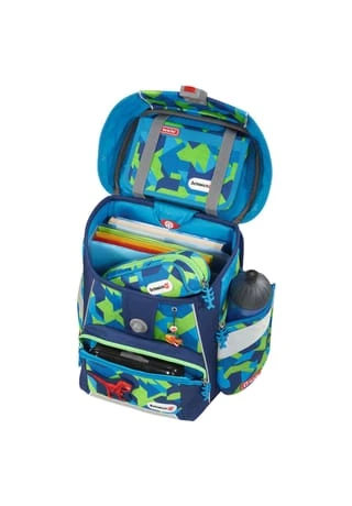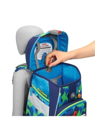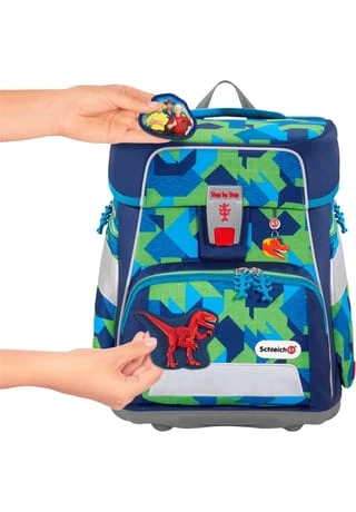 Die Limited Edition „Space Schleich“ ist Teil einer Kooperation mit dem Spielzeughersteller Schleich. Der Space Schleich mir zauberhaften Schleich-Motiven begeistert durch besonders leichtes Material, großes Fassungsvermögen und das höhenverstellbare Tragesystem, das sich Ihrem wachsenden Kind anpassen kann. Die ergonomische Rückenpartie, das Rückenpolster, sowie Hüftflosse, Brustgurt und Lageverstellriemen sorgen für ein optimales Trageerlebnis. Für die individuelle Gestaltung können Magic Mags, ganz nach dem Geschmack Ihres Kindes, angebracht werden. Im geräumigen Hauptfach, das mit praktischem Fidlock-Magnetverschluss geschlossen wird, gibt es jede Menge Platz für alles, was im Unterricht gebraucht wird, zusätzlich können die zwei Seitentaschen nach außen wachsen und so im Inneren für genügend Stauraum sorgen. Das Mäppchen kann platzsparend im Schulranzen-Deckel verstaut werden. Set bestehend aus: Schulranzen, Federmäppchen (komplett bestückt mit Markenstiften), Schlamperetui, Sportbeutel und 3-teiligem Magic Mags Set. Schulranzen Außenmaß: 28 cm x 20 cm x 37 cm / Gewicht: ca. 1250 g / Volumen: ca. 20 l